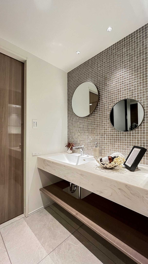 ●玄関・廊下・洗面・トイレ・磁器質タイル張り施工 ●廊下装飾部材&間接照明設置 ●リビング・洋室フローリング新規張替 ●建具新規交換 ●システムキッチン新規交換(D970・ディスポーザー) ●ユニットバス新規交換(1618サイズ) ●人造大理石カウンター洗面化粧台新規交換(W1300) ●トイレ新規交換・手洗い器設置 ●リビング天井間接照明設置 ●リビング天カセ式エアコン新規設置 ●全室クロス張替え ●給湯器新規交換 ●人感センサー設置 |